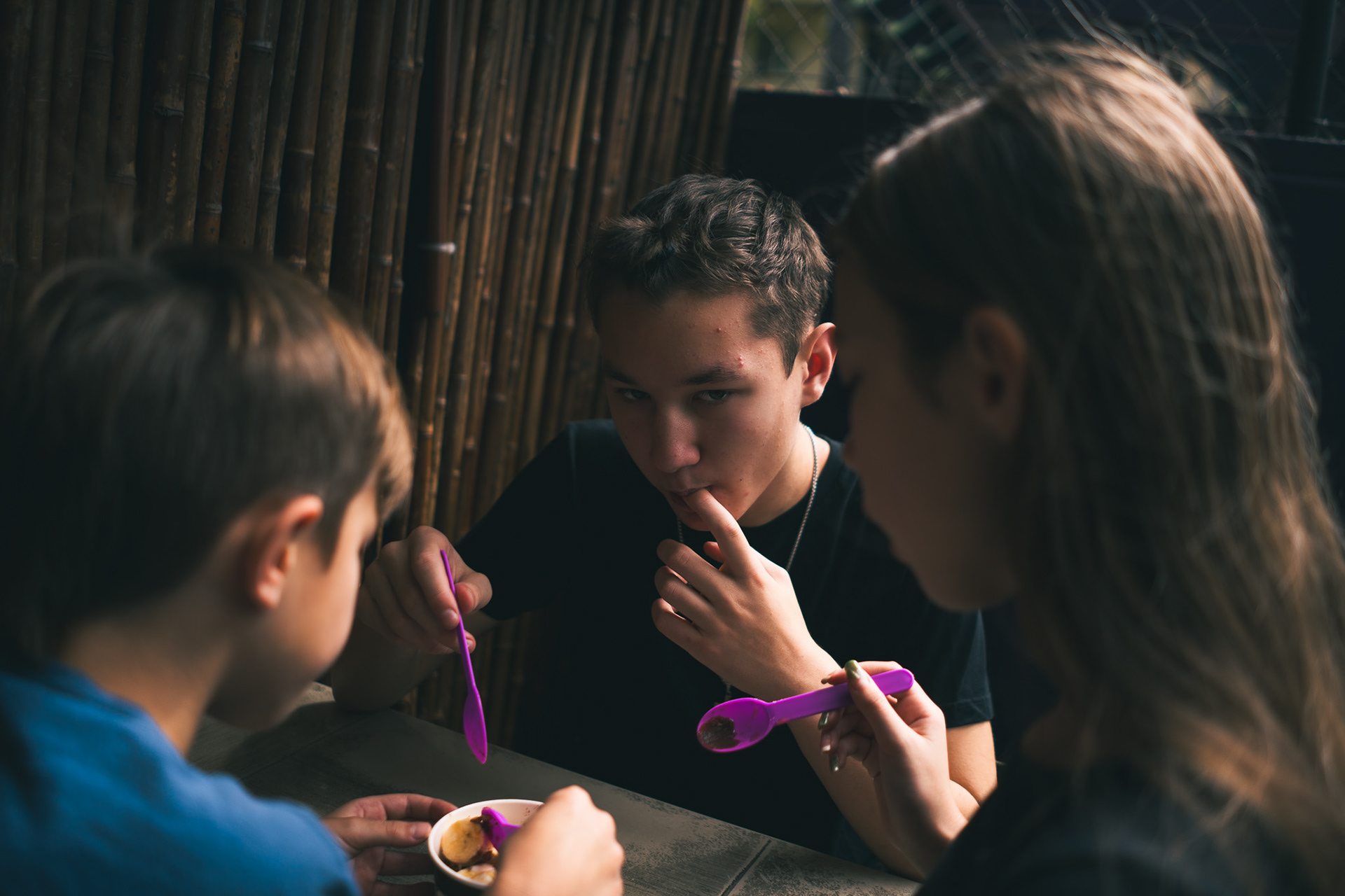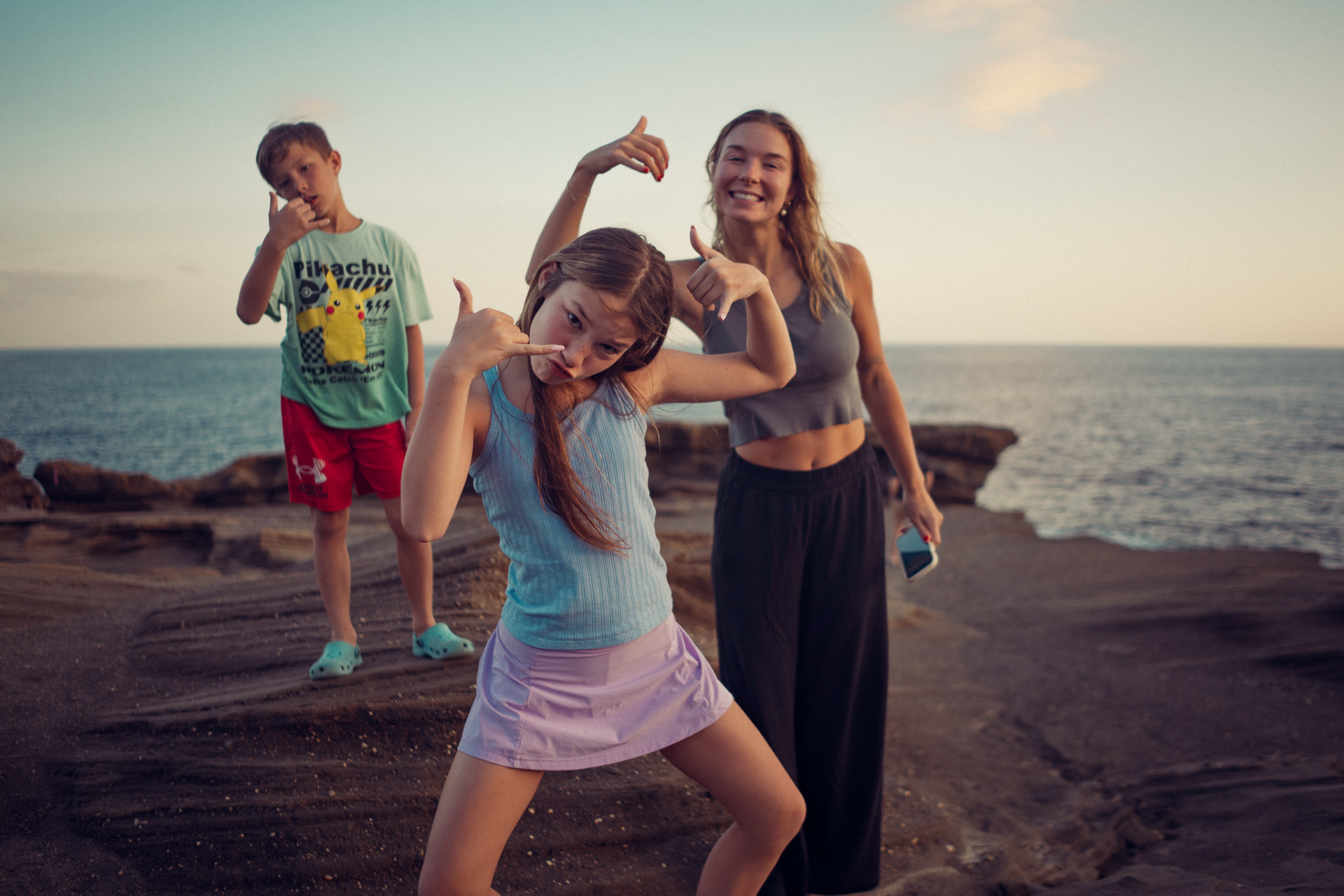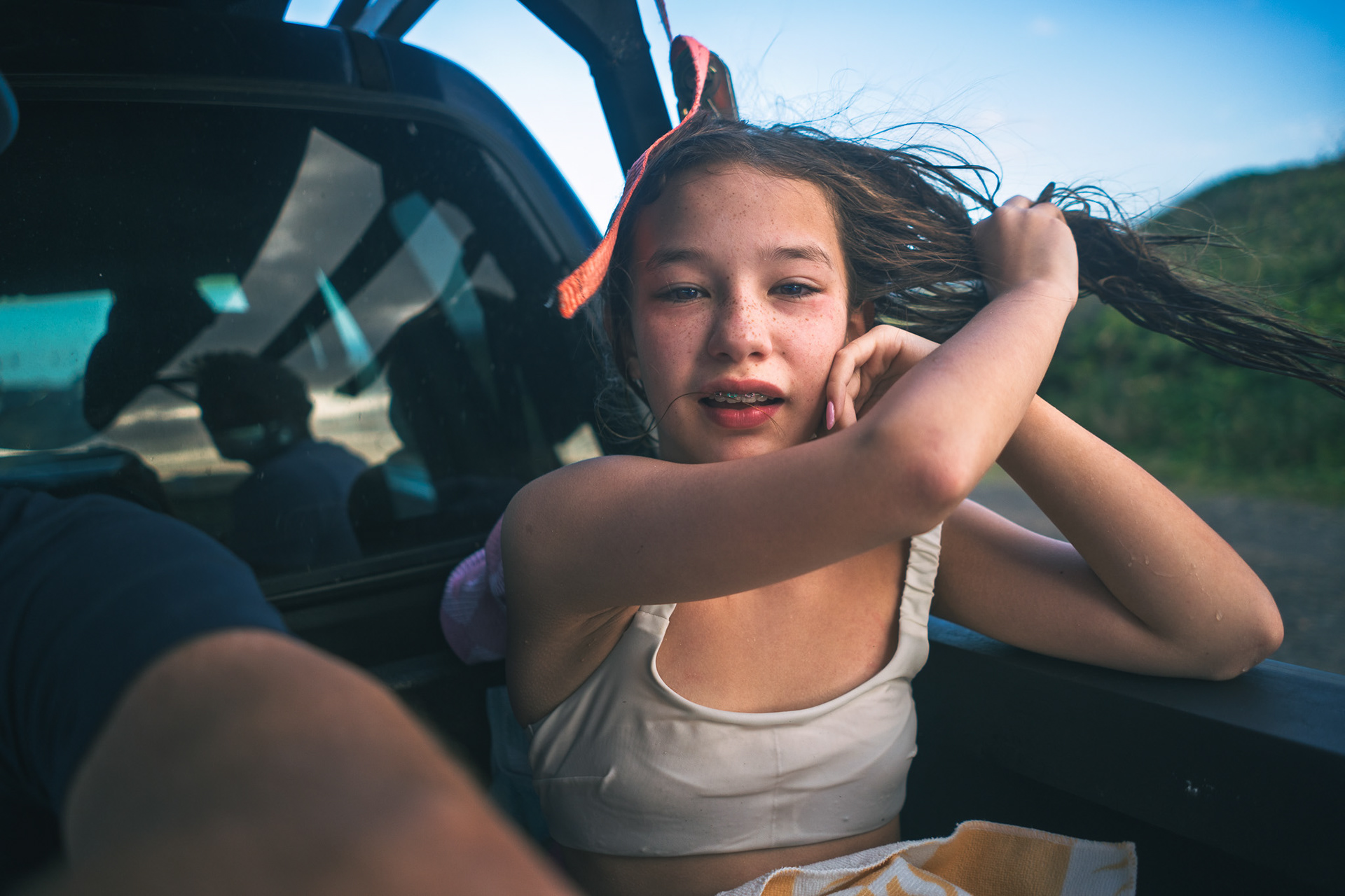 Mieke styles Jakobe's hair.